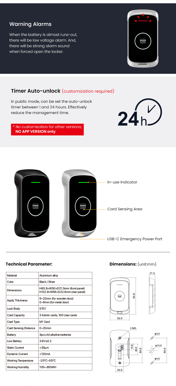 - Anti-picked (prized) alarm (Optional)