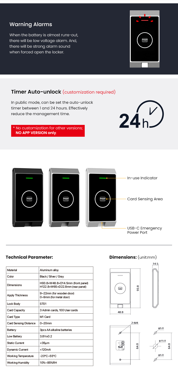 - Anti-picked (prized) alarm (Optional)